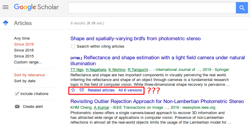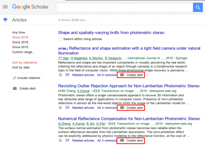 However, especially for newer papers that have not yet been cited, for example the ones coming in through an already existing Scholar alert, there is no way to create an alert. The “Cited by” link is simply not displayed under those papers, and without it, there is no way to directly create an alert for a paper. You can of course enter the paper title as a search term, but that usually gives you a lot of other hits that you might not always want to get notified of.